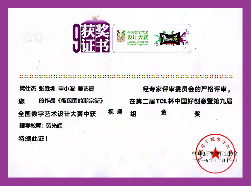 2015年全国数字传媒艺术设计大赛 视频组金奖