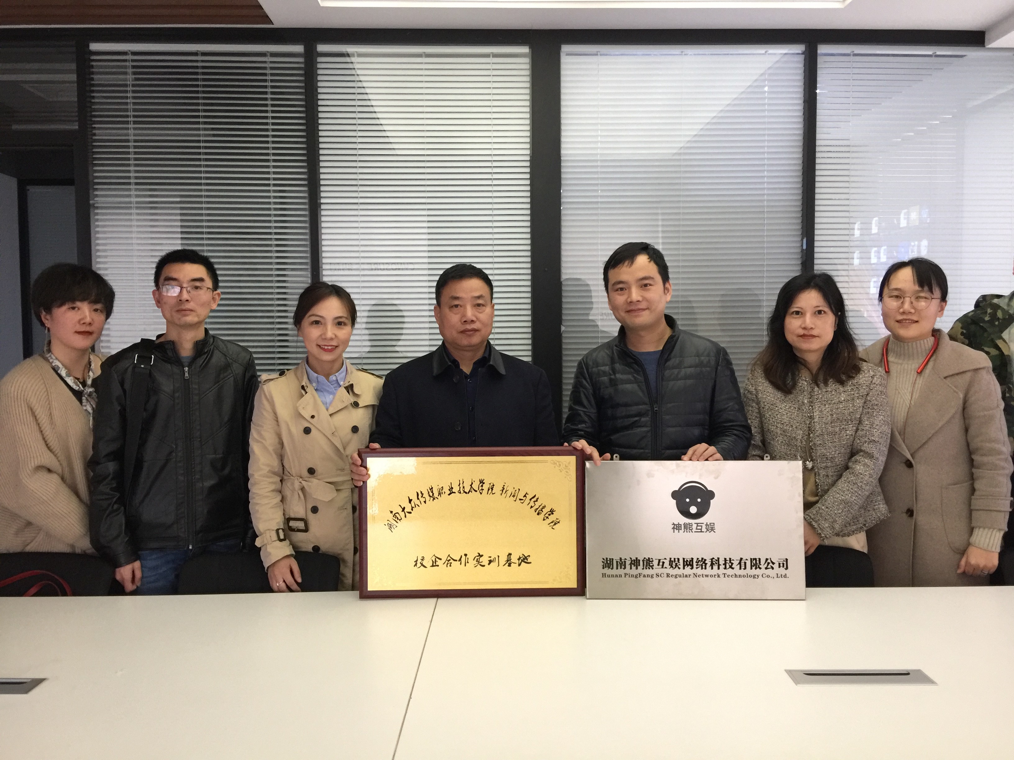 2020年11月26日,湖南大众传媒职业技术学院新闻与传播学院院长劳光辉、副院长罗琦、新闻采编与制作教研室主任熊雯婷、教科办主任周洁、招生就业干事李婧婧一行五人抵达湖南神熊互娱网络科技有限公司,受到了湖南神熊互娱网络科技有限公司总经理李冲的热情接待。校企合作洽谈会在湖南神熊互娱网络科技有限公司总经理室举行。