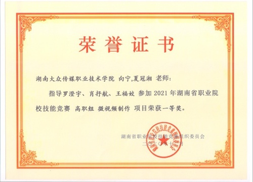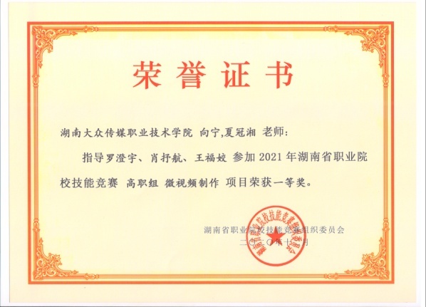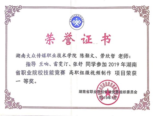我院师生组成的代表队在2019年、2020年湖南省职业院校微视频制作技能竞赛中,荣获一等奖。
