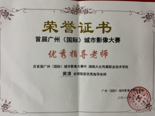 学生作品《长沙童谣》获得2018广州(国际)城市影像大赛微纪录片铜奖,黄清老师获优秀指导教师称号。