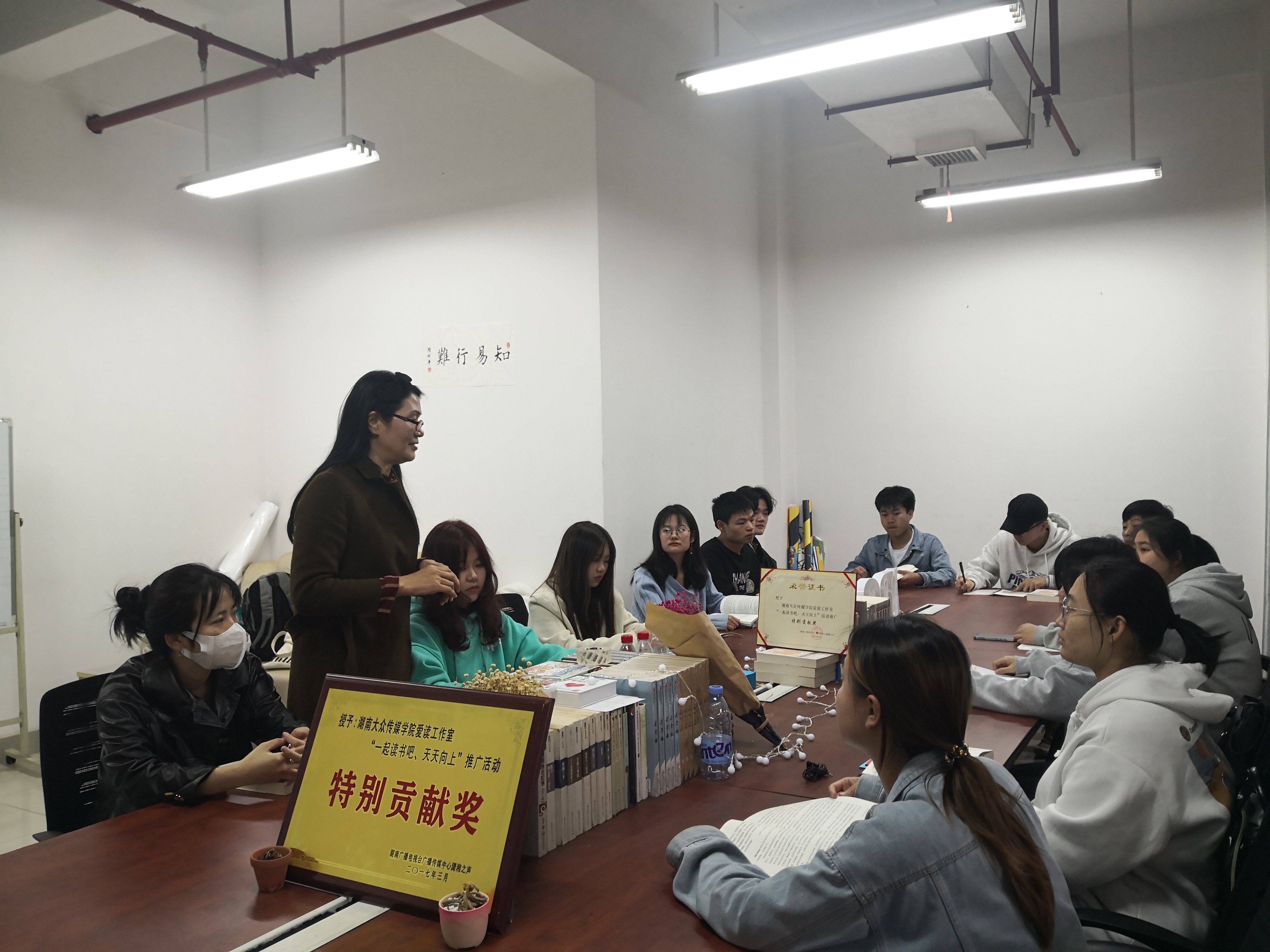 【通讯员 龙天】2021年4月9日晚上,一群年轻人正在美丽校园一角安静的工作室热闹地分享着他们最近的阅读。这是爱读工作室日常的一周一次的线下阅读分享会。“爱读”工作室从创始之初就确定中华传统文化阅读、革命文化阅读和社会主义先进文化阅读作为学生主要阅读方向,因此曾被推荐为中国职业技术教育学会的“美德”育人经典案例、湖南省教育工委“文化育人”经典案例。