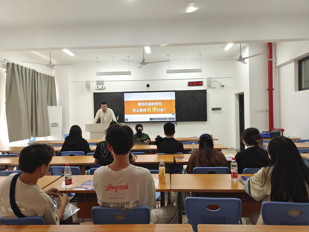 活动开场,招聘负责人江叙提出“如何看待直播行业”这一问题引起了同学们的兴趣和讨论,江老师表示:“此次宣讲会的意义在于 宣传正能量直播,传达积极向上的精神,带领大家初步了解直播行业。”随后,江老师从公司概况、公司体系、公司所获荣誉、公司代表人物、培训安排等内容进行了详细的介绍,让同学们进一步了解到了公司的发展状况。