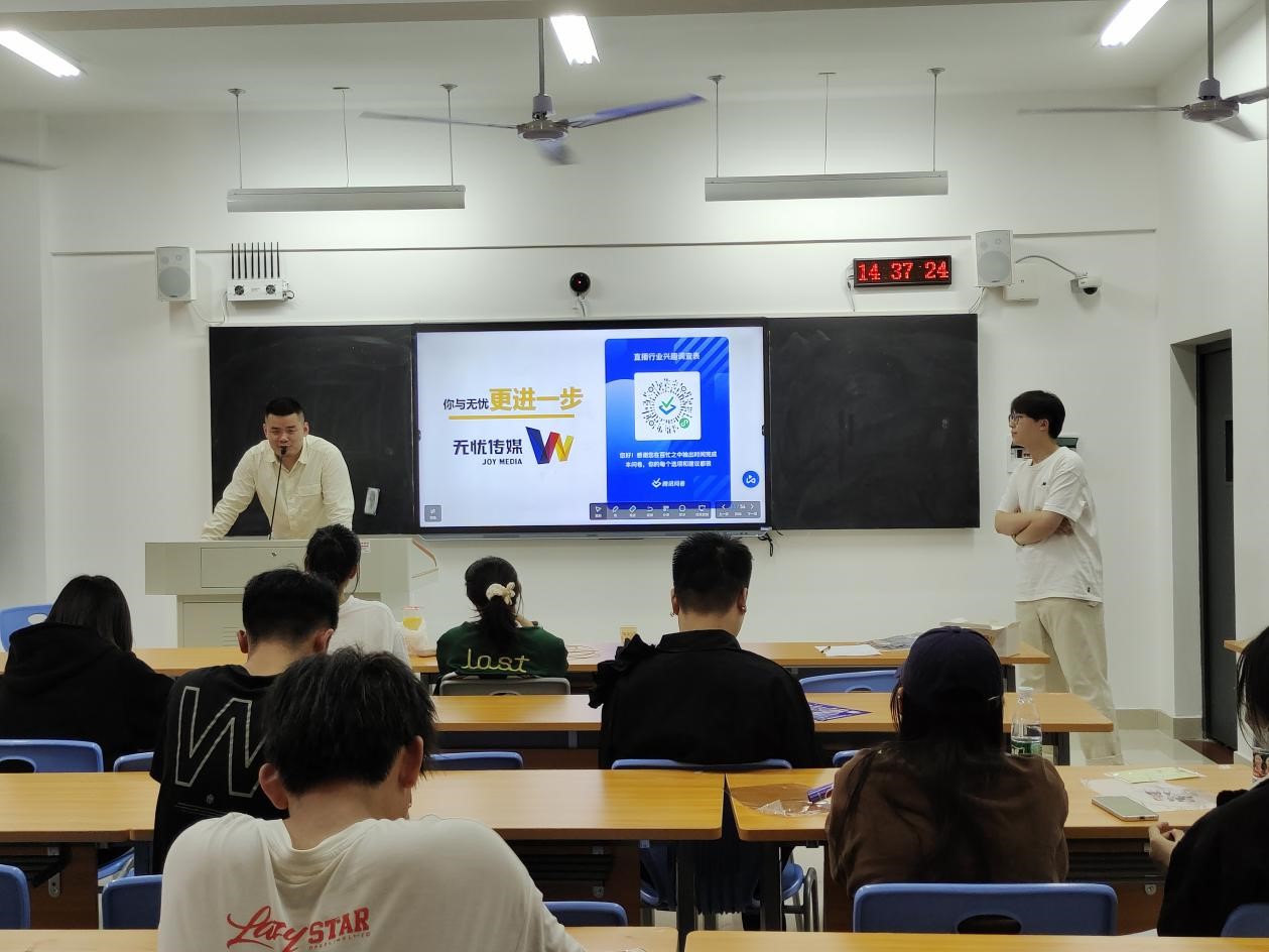 11月10日下午,无忧传媒集团有限公司长沙分公司招聘宣讲会在一体化教学楼201教室举行,该公司校园招聘负责人江叙、刘卓分别进行宣讲,新闻与传播学院部分应届毕业生参加了此次宣讲会。
