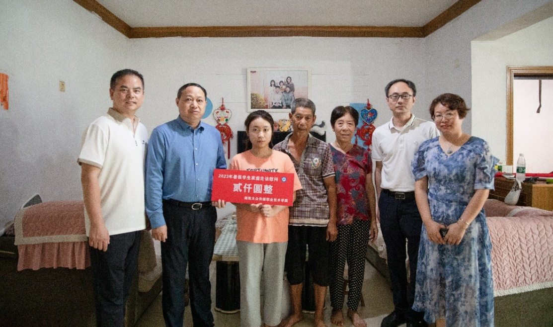 为了扎实做好家庭经济困难学生的资助工作,7月11日新闻与传播学院开展了2023年暑假“重点关注学生”家庭慰问走访活动。学校党委书记李三福一行8人走访了衡阳市衡南县谭子山镇黄同学家,送上了学校的殷切关怀和慰问金。