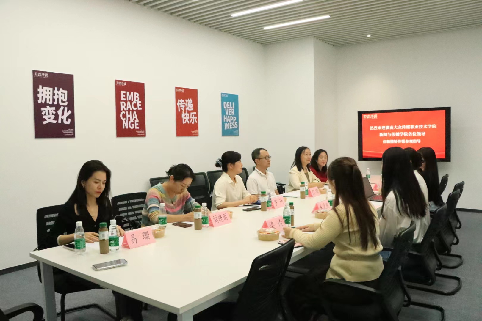 2023年9月21日下午,湖南大众传媒职业技术学院新闻与传播学院与酷看文化传播有限公司校企合作签约仪式在马栏山众创园撒娇传媒会议室顺利举行。新闻与传播学院院长周曙率学院相关负责人出席并座谈,酷看文化传播有限公司负责人曹蕊、人力资源负责人等相关人员出席了签约仪式。