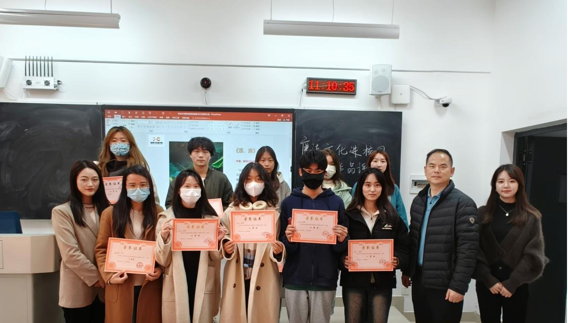 为传播廉洁文化,提高师生们的廉洁意识,营造学风清新、校风清朗的清廉校园环境,新闻与传播学院于12月6日在理实一体化101举办了第四届廉洁文化摄影比赛。新闻与传播学院党总支书记刘小华、王寓之老师、王婵婷老师三位专家担任现场评委,各班学生代表现场观摩。