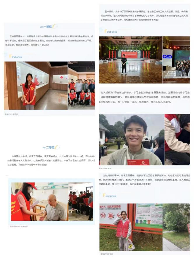 活动自启动以来,学生参与积极性高涨,共收到50多篇高质量文稿。这些文稿不仅记录了学生们的所见所感,更展现了他们对于历史、青春和社会责任的深刻理解和独到见解。在五一假期期间,学生们纷纷走出校园,前往各地的五四运动历史展馆和革命遗址,通过实地参观学习,感受历史的厚重和五四精神的伟大。学生们不仅积极学习历史知识,更将所学知识付诸实践。他们纷纷为各自的家乡和社区提供志愿服务,用自己的实际行动践行青春责任和使命担当,为社会贡献一份力量。