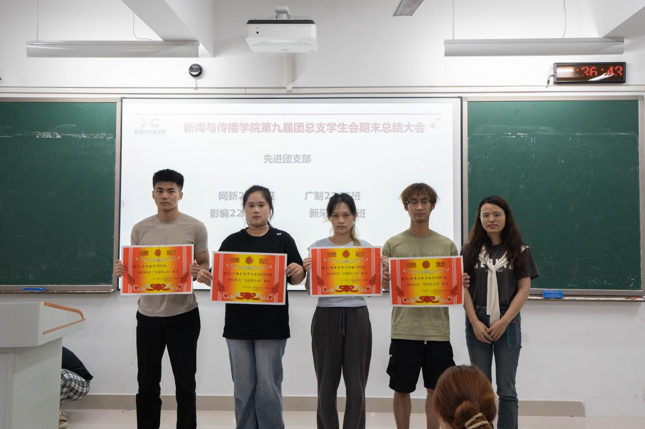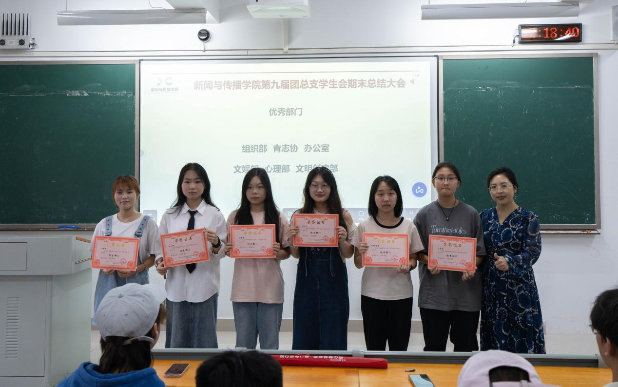 为总结经验、展望未来,进一步加强学院组织队伍建设,提升学生干部的综合素质,新闻与传播学院6月26日中午在一体化106教室隆重举行第九届团总支学生会期末总结大会。此次大会由团总支副书记刘思敏主持,新闻与传播学院团总支书记邓芳芳、学工办主任李艳梅及团学会全体成员出席本次大会。