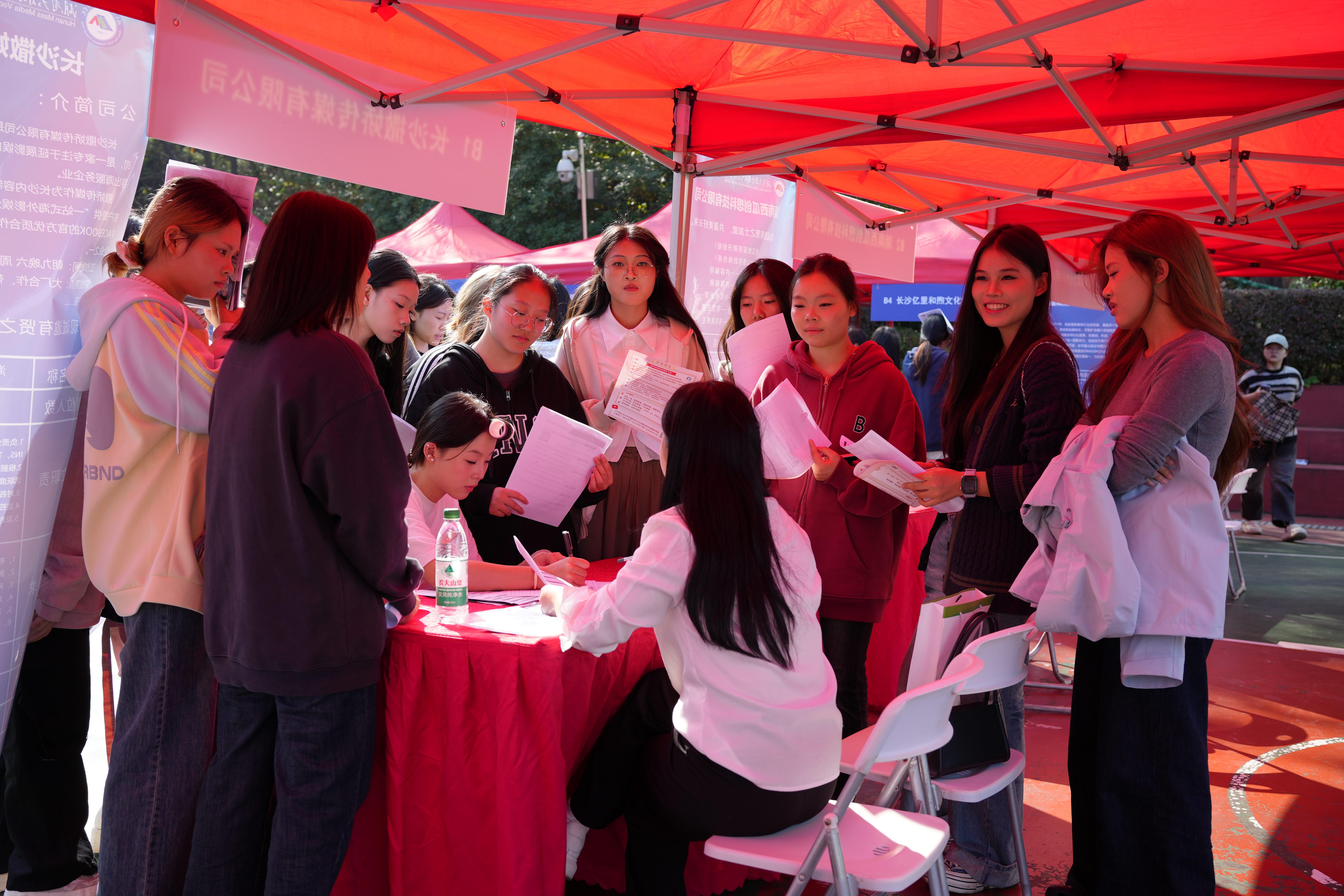 深入落实2025届毕业生高质量充分就业,促进毕业生与企业招聘精准对接,拓宽学院毕业生就业渠道,为毕业生提供更优质的就业岗位,新闻与传播学院2024年11月12日下午在一体化教学楼前篮球场开展了 “职等你来”为主题的新闻传媒类秋季专场招聘会结合我院毕业生专业对口的就业需求,在学院党总支书的指导下精心策划和筹备,积极与企业进行沟通,了解企业招聘需求,为招聘会的高效进行奠定了基础。