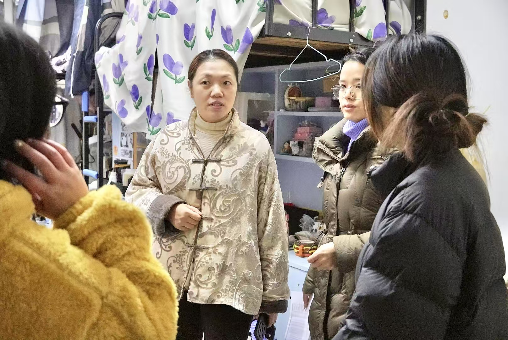 图3:新闻与传播学院党总支副书记李洁细心询问学生近况