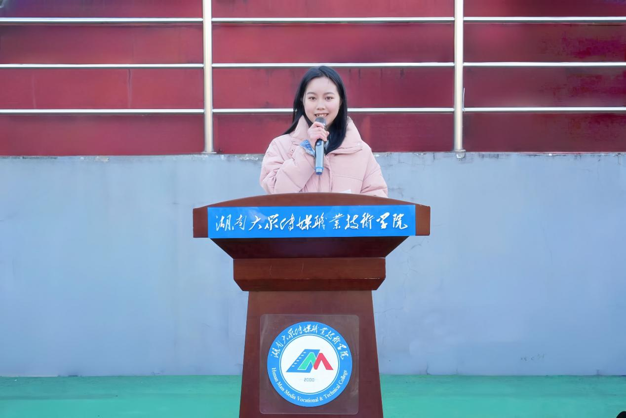 随后,新闻与传播学院学生代表马邱芳就“我和祖国共成长,奋斗青春向前进”的主题发表演讲。她表示我们生逢盛世,应将奉献融入日常、把热情洒向山河,在追逐梦想中实现个人价值,拼搏汇聚强国之力。