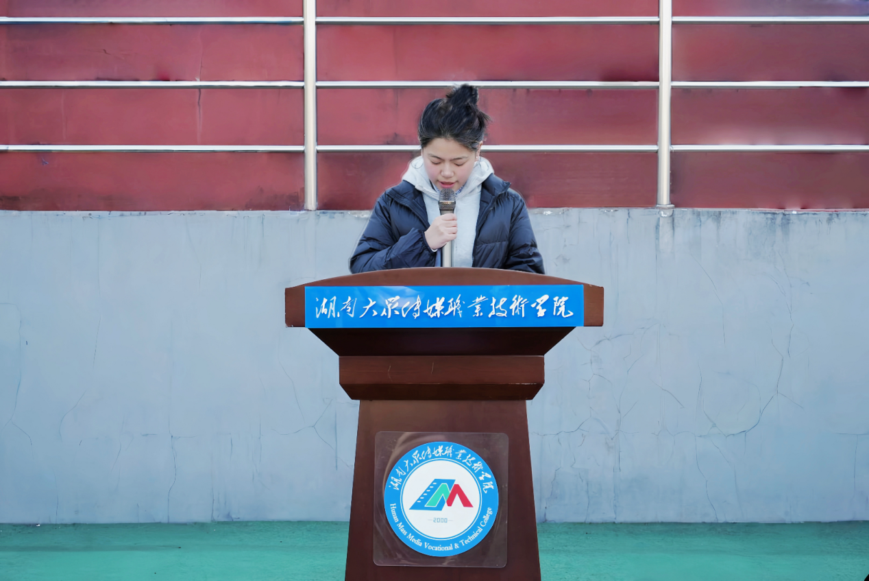 2025年3月17日新闻与传播学院于田径场举行了升旗仪式。出席本次升旗仪式的人员有湖南大众传媒职业技术学院学生工作部部长王涛、新闻与传播学院党总支书记刘小华、党总支副书记李洁、学工办主任李艳梅、团总支书记邓芳芳、辅导员陆平、杨宇若及全体团学会成员、传媒青年讲师团代表、国旗护卫队成员及24级学生代表。