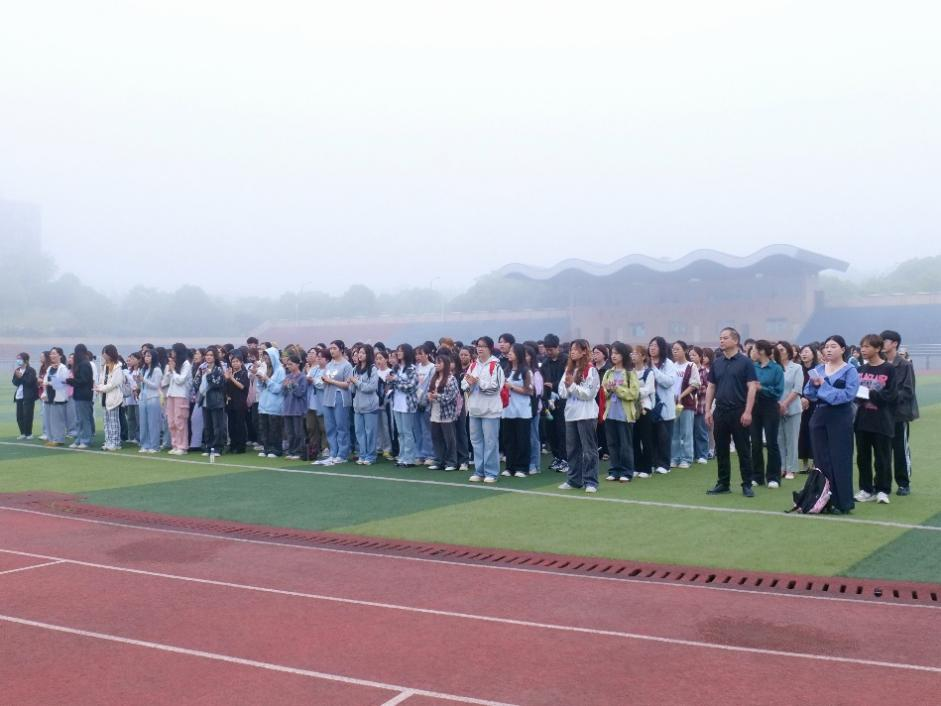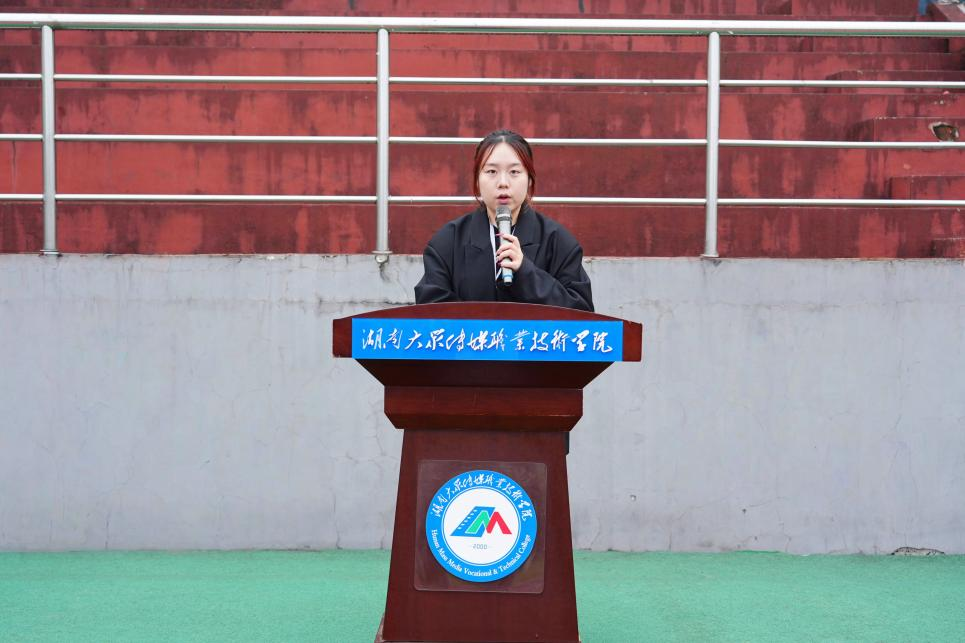 为弘扬五四精神,给同学们树立良好的榜样。2025年4月28日新闻与传播学院于田径场举行了升旗仪式。出席本次升旗仪式的人员有新闻与传播学院党总支书记刘小华、党总支副书记李洁、湖南大众传媒职业技术学院学生工作部刘冬辉、学工办主任李艳梅、辅导员辜梅玲、田小凤、许茜、全体团学会成员、传媒青年讲师团代表、国旗护卫队成员及2024级广播影视节目制作、数字出版全体同学。