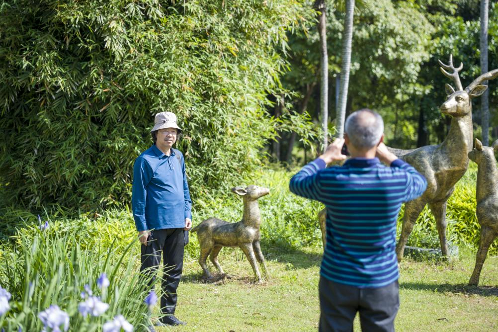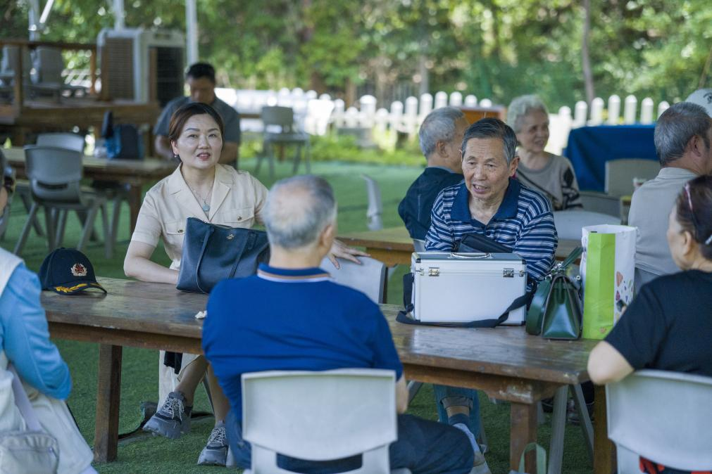 图5:花海下的休憩间隙,老同志们踊跃分享自己的故事。