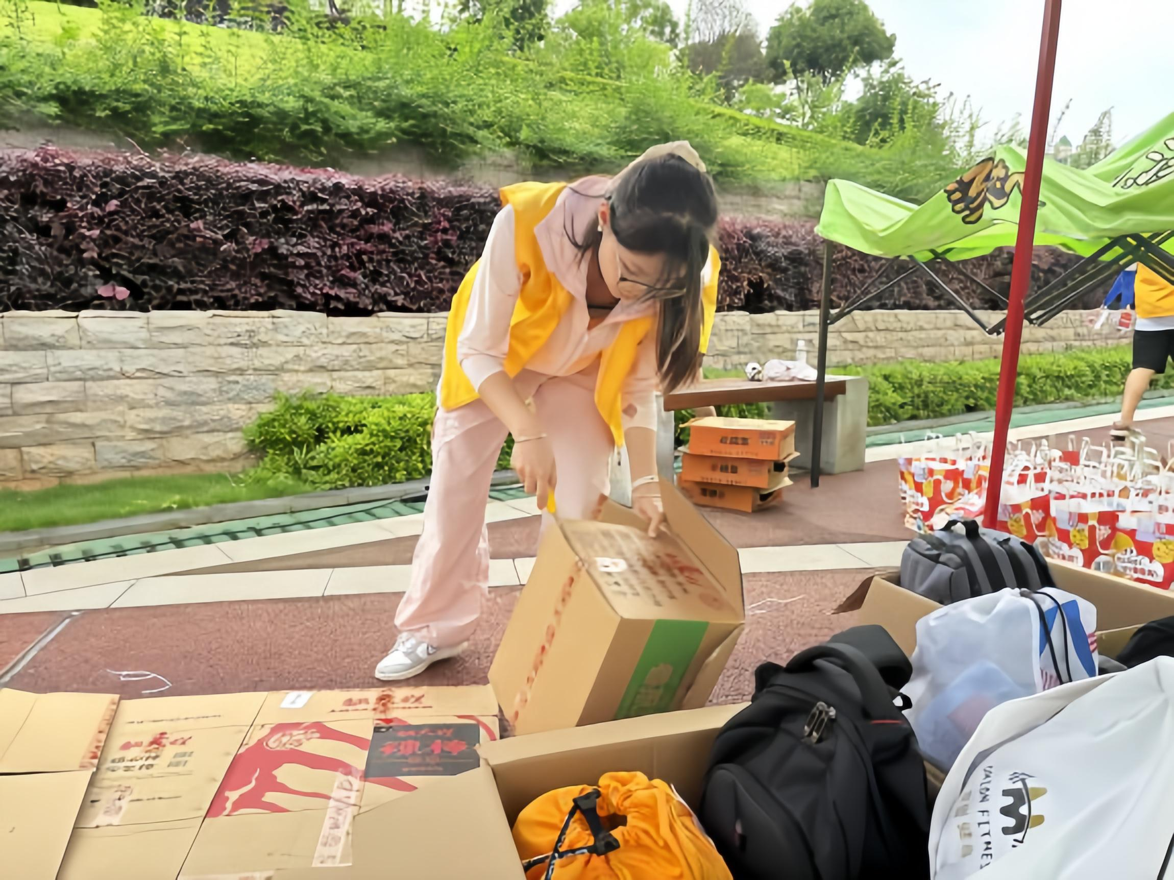 活动当天,志愿者分成四组高效协作:签到引导组耐心核对信息,热情引导入场;物资分发组认真发放参赛物资,确保物品及时到位;补给保障组在赛道旁及时提供饮用水和能量食品;物品存取组细心登记保管物品。各组紧密配合,全程护航赛事流畅进行。