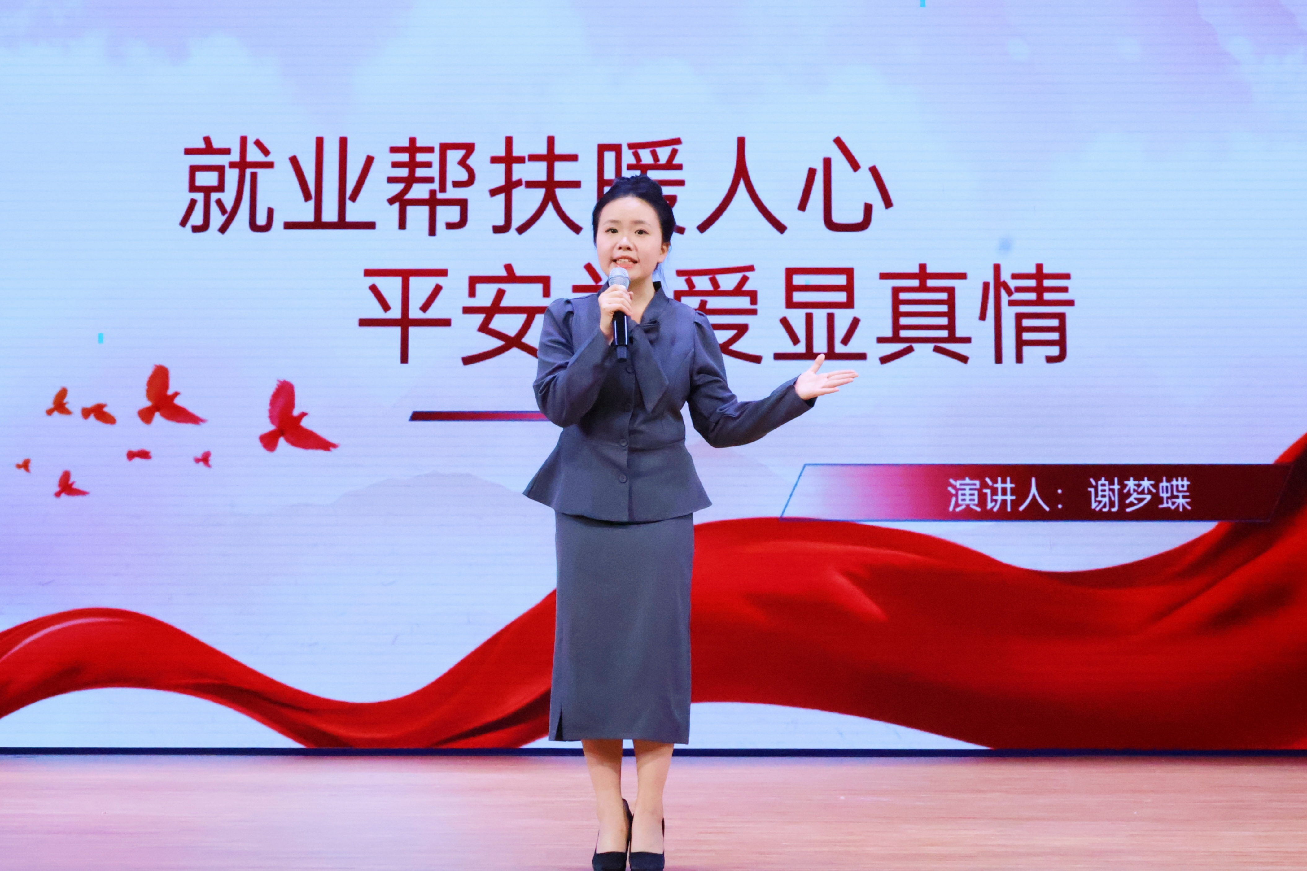 活动现场庄重热烈,一个个直击人心的禁毒故事轮番上演。我院学子谢梦蝶紧扣“帮扶吸毒人员就业”主题,用富有感染力的话语讲述真实案例,展现了新时代青年对社会责任的深刻理解与担当。她清亮有力的声音,既是对同龄人远离毒品的真诚呼吁,也是对毒品危害的有力警示,赢得了现场观众的共鸣与掌声。