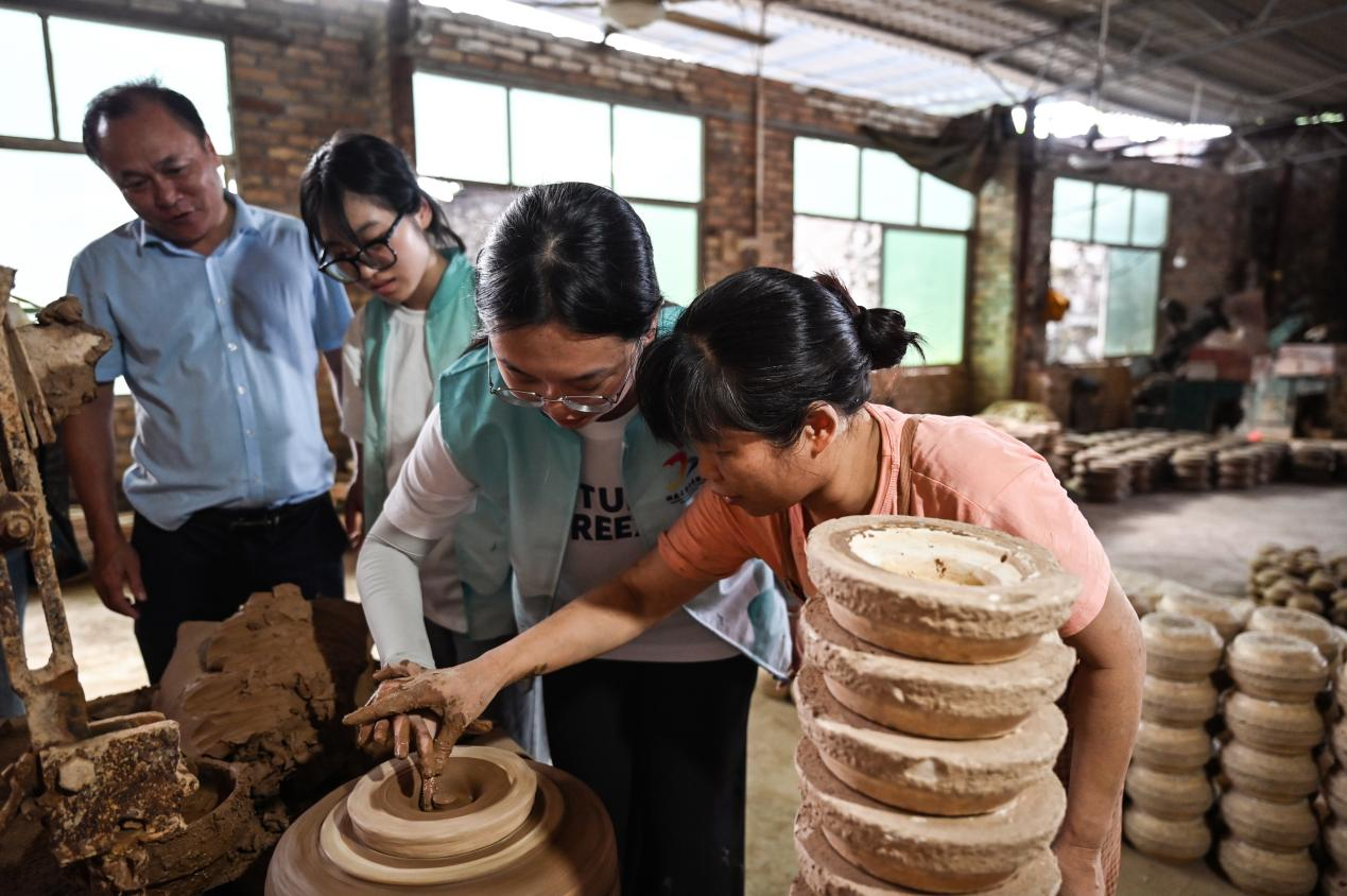 7月10日,湖南大众传媒职业技术学院“光影青春”志愿服务团队走进郴州市桂阳县舂陵江镇开展暑期“三下乡”社会实践活动。带着专业设备与满腔热情,团队成员深入这座拥有悠久制瓷历史的古镇,以“赋能传统产业、传播陶瓷魅力”为主题,用镜头和创意为当地的千年陶韵寻找时代新表达。