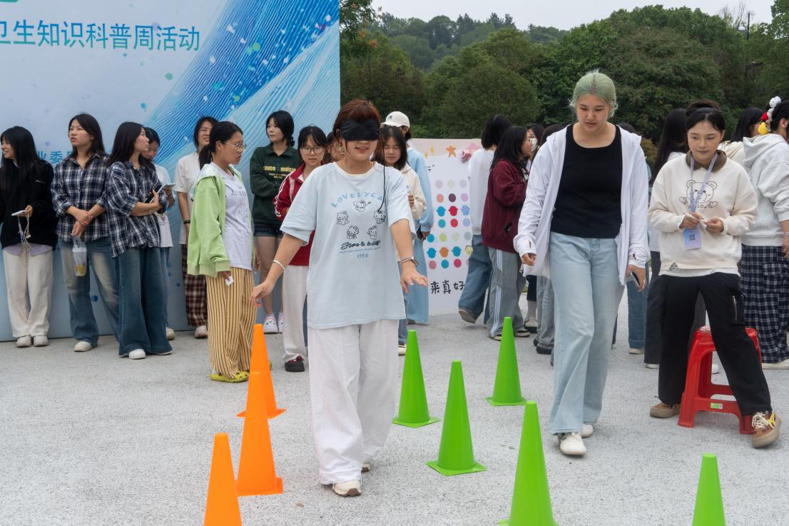 在最具挑战性的“信任盲行”区,参与同学戴上眼罩,在同伴清晰而耐心的指引下,小心穿越由交通锥设置的障碍通道。“慢一点,往左半步……对,就这样!”广播影视节目制作专业的王同学在成功“闯关”后长舒一口气:“当眼前一片黑暗,才真正体会到信任的分量。无论是引导者还是被引导者,都需要全心投入。”