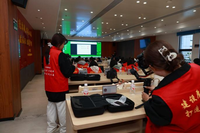 台前的精彩离不开幕后的坚守。活动现场,我院“光影青春”志愿服务团队承担了全程拍摄任务。他们穿梭于会场各个角落,精准捕捉选手的宣讲瞬间与观众的专注神情,以专业设备与技术能力,为整场活动留存了高质量影像资料,也为后续禁毒宣传积累了宝贵素材。