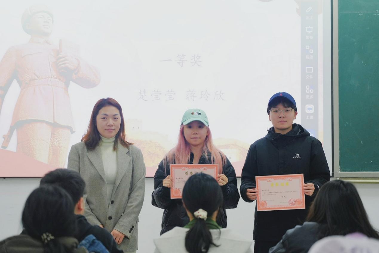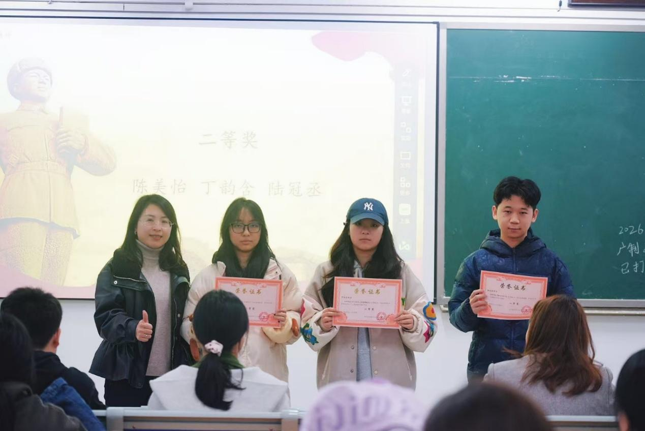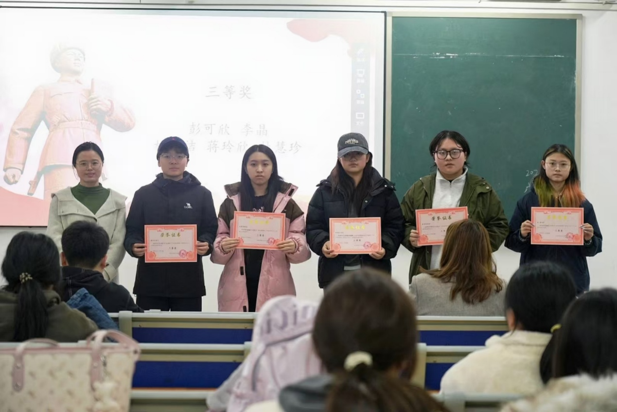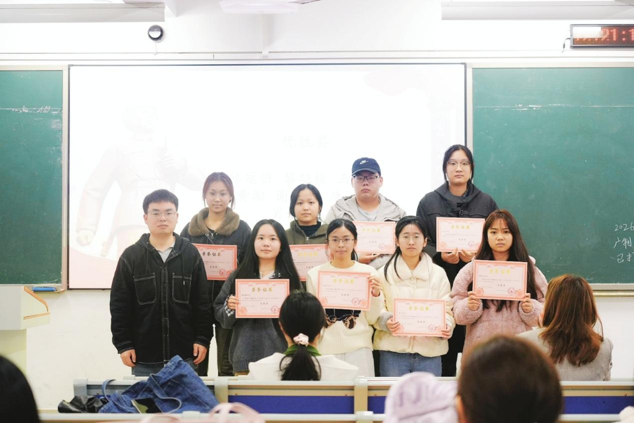 致辞结束后,颁奖环节正式开启。经过层层筛选与公平评审,本次比赛共评选出一等奖2名、二等奖3名、三等奖5名、优胜奖8名。获奖同学依次上台接受表彰,学院老师为他们颁发荣誉证书和奖品,并亲切合影留念。现场掌声此起彼伏,气氛温馨而热烈。