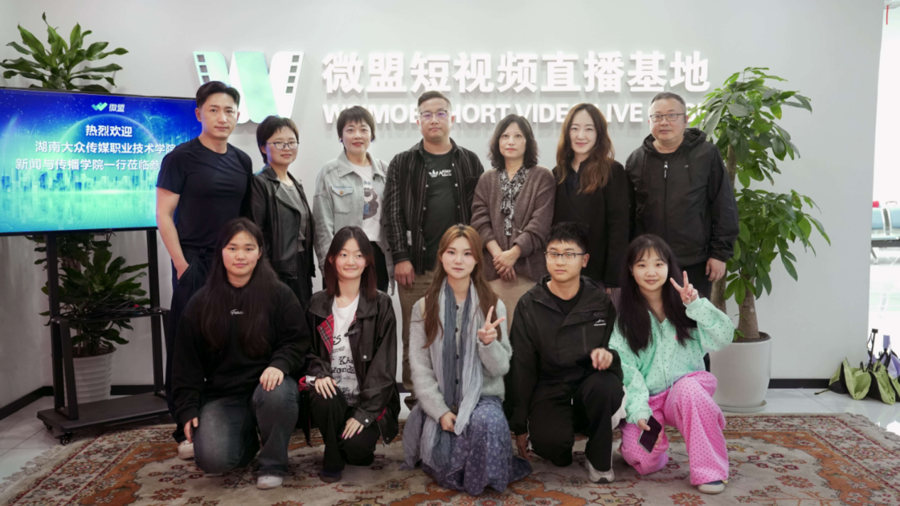 2026年4月14日,新闻传播学院组织影视编导、节目制作、摄影摄像、网络新闻与传播等专业的骨干教师及调研团队,前往微盟短视频直播基地长沙中心开展实地调研与交流活动。此行旨在深入了解新媒体环境下内容生产的工业化流程,为学院优化专业设置、创新人才培养模式寻找切实可行的突破口。