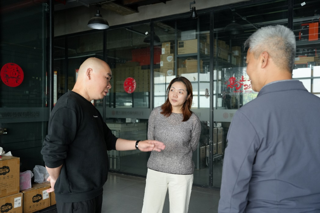 图4:邹勇主任与囍上眉梢(长沙分店)负责人尹晓龙交流